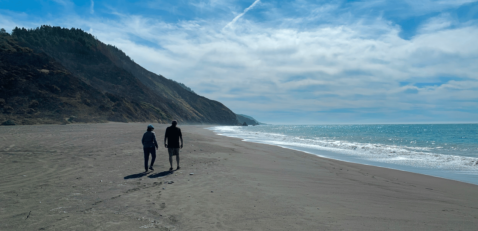 We felt far from the norms and expectations of civilization, where plants and animals generally act as they should and trees look like trees. Out here, the trees had a mind of their own and the very air tasted wild. And rightly so, for we were on the Peter Douglas Trail at the southern end of the Lost Coast, which is not called Lost for nothing. It had taken us an hour and a half to drive here from where we all met up in Fort Bragg, over half of that time being dedicated to crawling along the jagged ruts and abruptly steep hairpin bends of Usal Road. It was a rugged trip, not for the faint of heart, but oh boy howdy was it worth it.